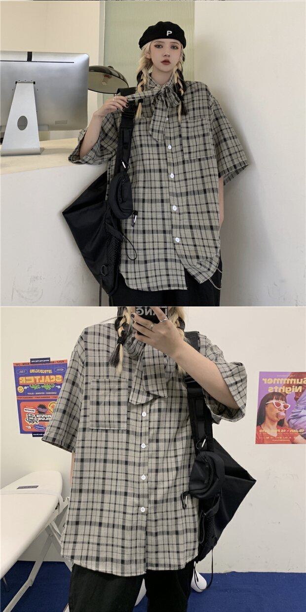 サマースタンダード格子柄シャツ ルーズジャケット レトロ 夏物 Brother_is_Style97817419216