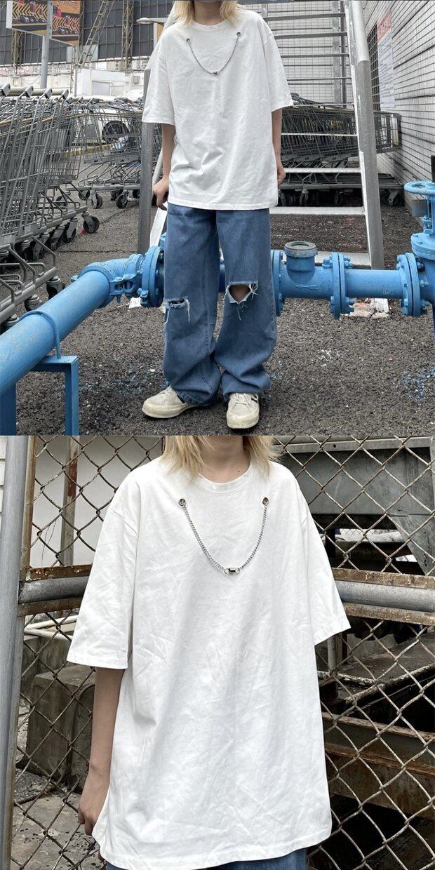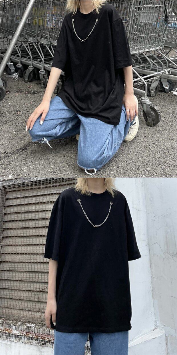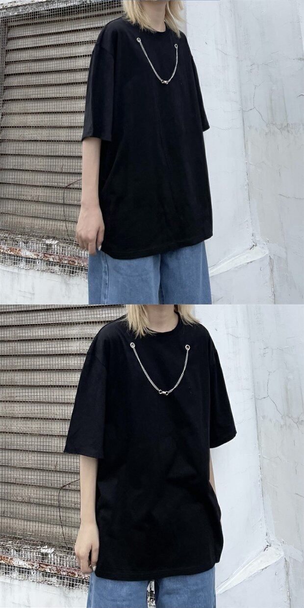 ブラックトップス サマースタイルチェーン Tシャツ ルーズ ストリート かわいい 夏物 Brother_is_Style47719452559