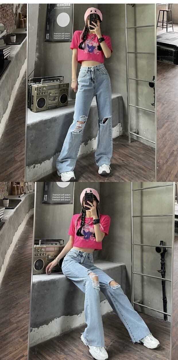 パンツ サマーハイウェストウェストジーンズ ルーズブルー ストリート 夏物 Brother_is_Style66043185407