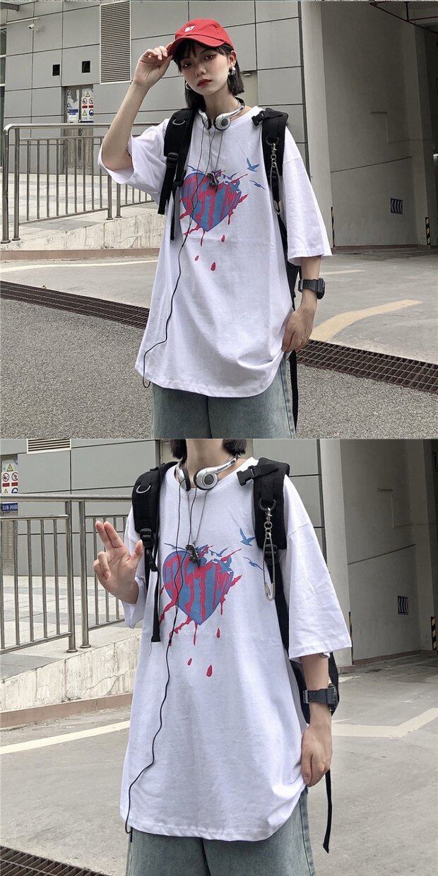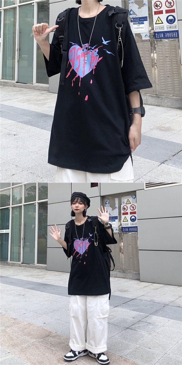 サマートップス ルーズブラックTシャツ ストリート 夏物 Brother_is_Style88267324808