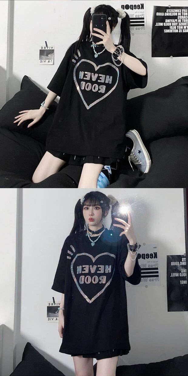 サマースタンダードシャツ ブラックルーズTシャツ レトロ 夏物 Brother_is_Style47391911544
