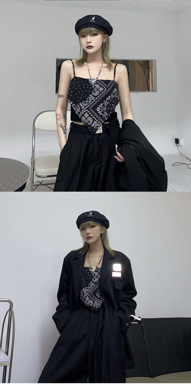 レディースサマーFlowerデザイン ショートブラックトップス 夏物 フラワーデザイン Brother_is_Style66994796293