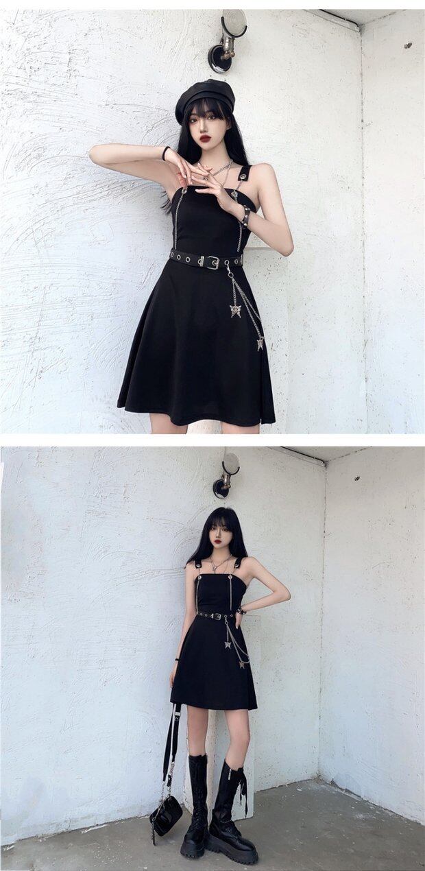 スカート サマーブラックAラインショートウェスト薄手ドレス 夏物 Brother_is_Style64165679465