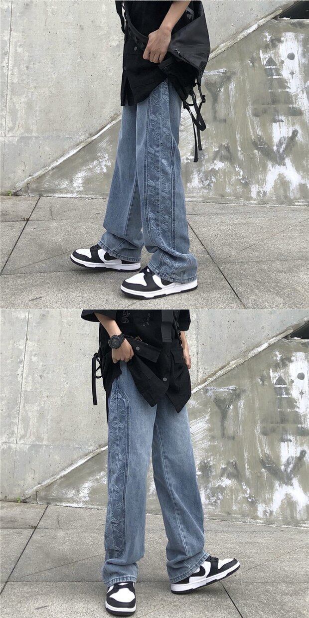 パンツ サマースタイルブルーハイウェストウェストルーズワイドレッグジーンズ かわいい 夏物 ワイドパンツ Brother_is_Style68353412081