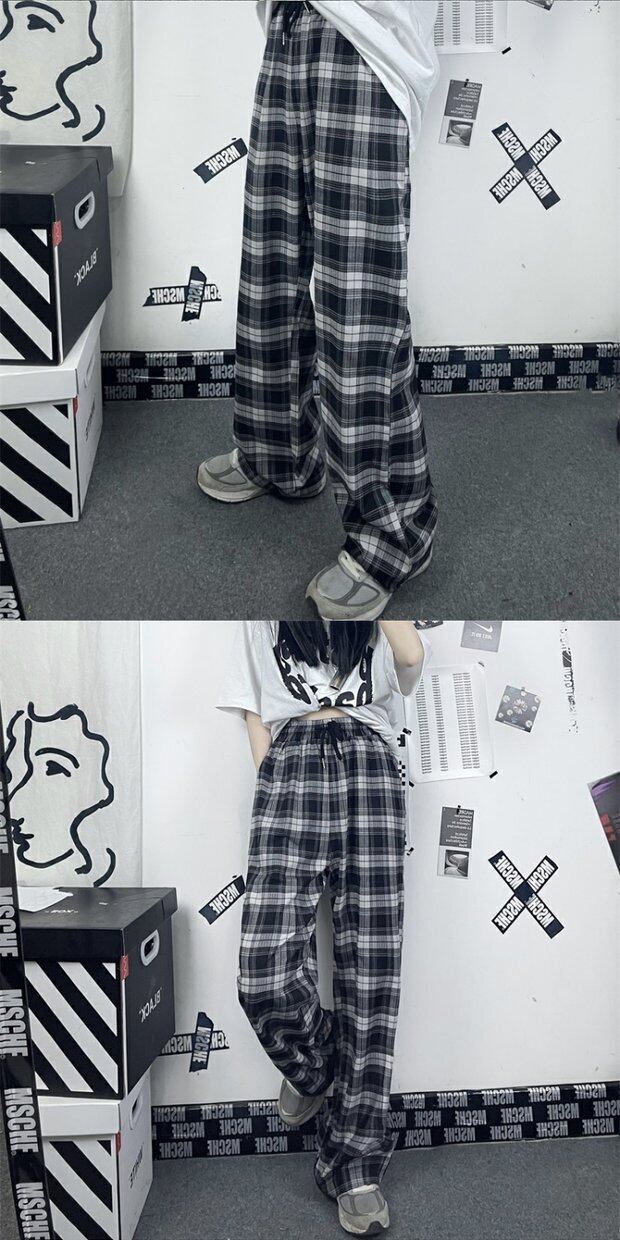 パンツ レディースサマースタンダード格子柄ルーズ薄手カジュアル レトロ 夏物 Brother_is_Style61609157114