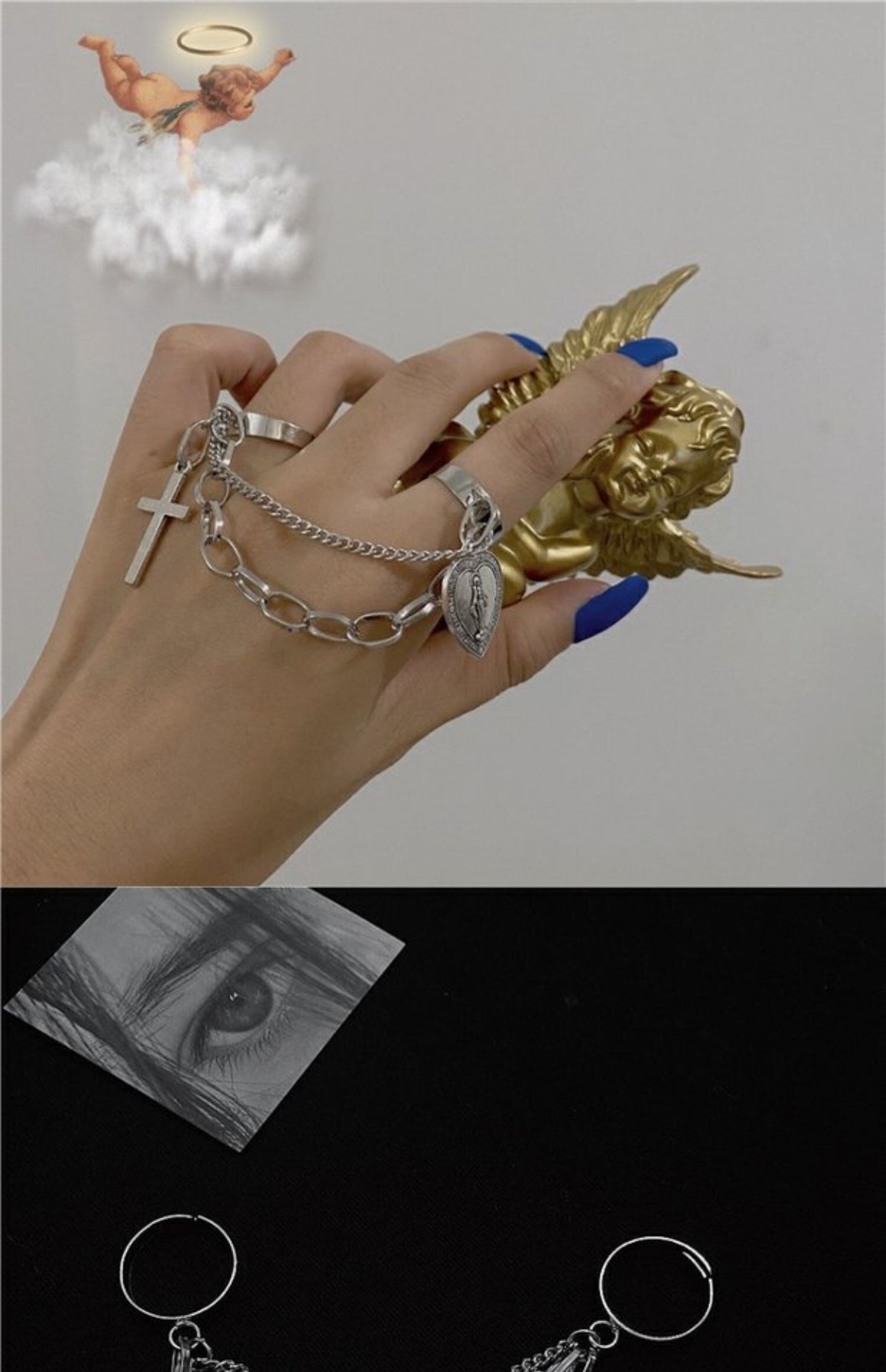 レッドスタンダードクロスワンピースリング アクセサリー チェーン レディース レトロ 指輪 Brother_is_Style58919968584