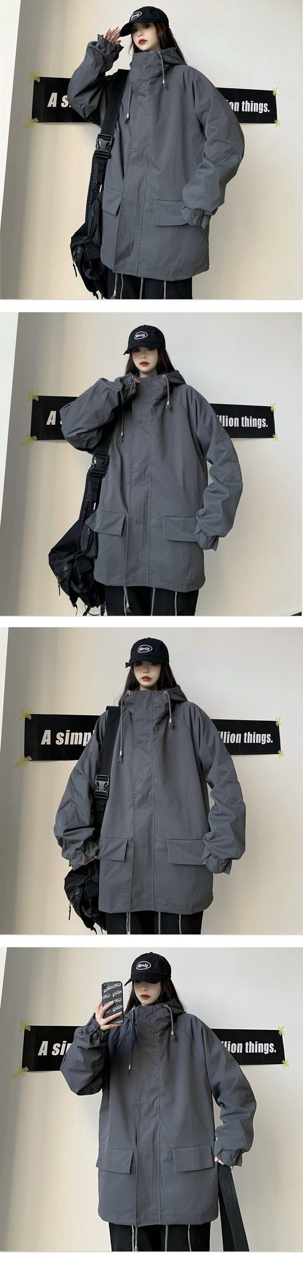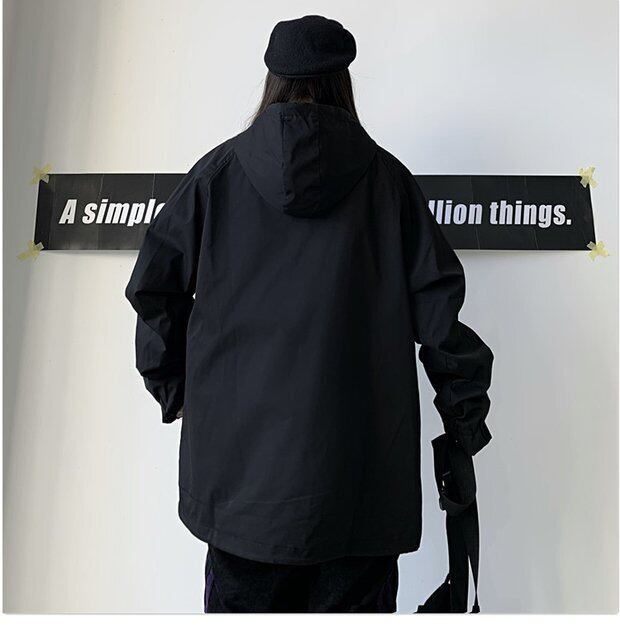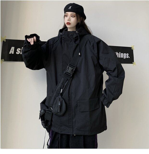 スプリングスタイル薄手ジャケット ルーズブラックフード 春物 Brother_is_Style16697514487