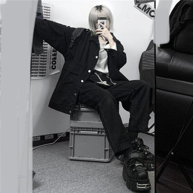 スプリングスタイルジャケット ルーズスタンダードブラックトップス レトロ かわいい 春物 Brother_is_Style48487412446