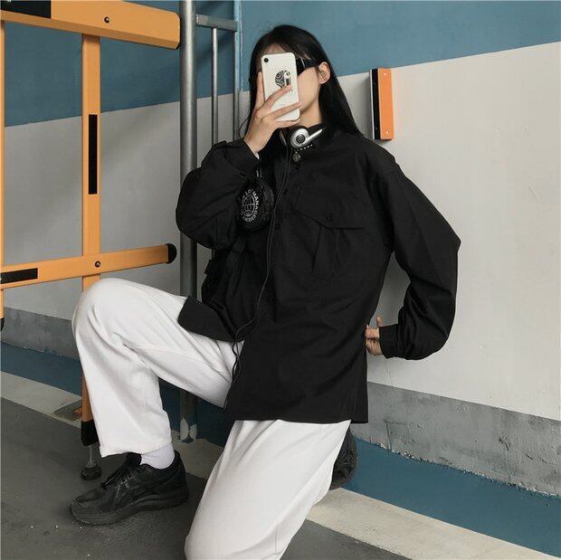 シャツ レディーススプリングスタンダードコーデュロイジャケット ルーズブラック レトロ 春物 Brother_is_Style36913424174