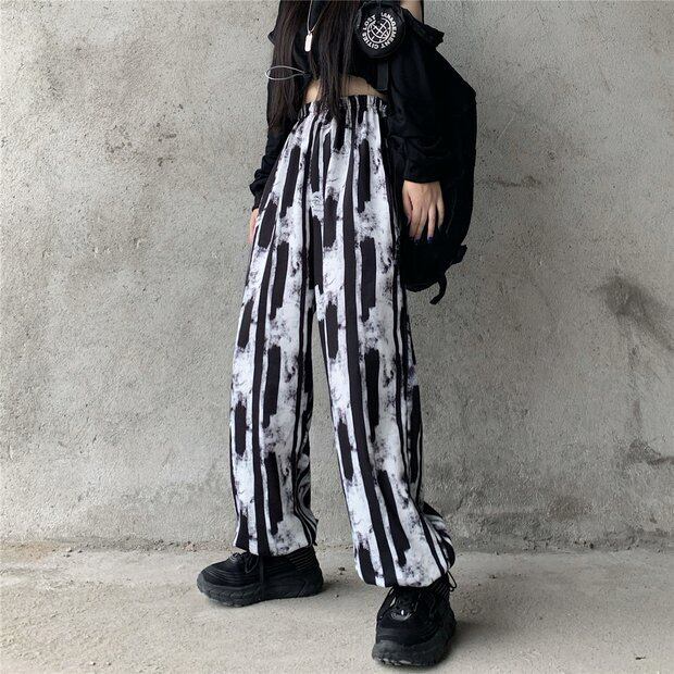 パンツ スプリングスタンダードストライプワイドレッグルーズハイウェストウェストカジュアル コルセット レトロ ストリート 春物 ワイドパンツ Brother_is_Style98945547044