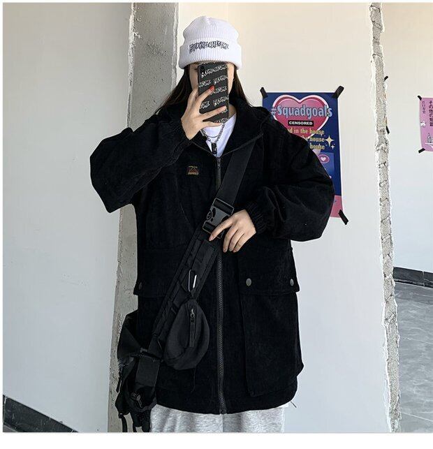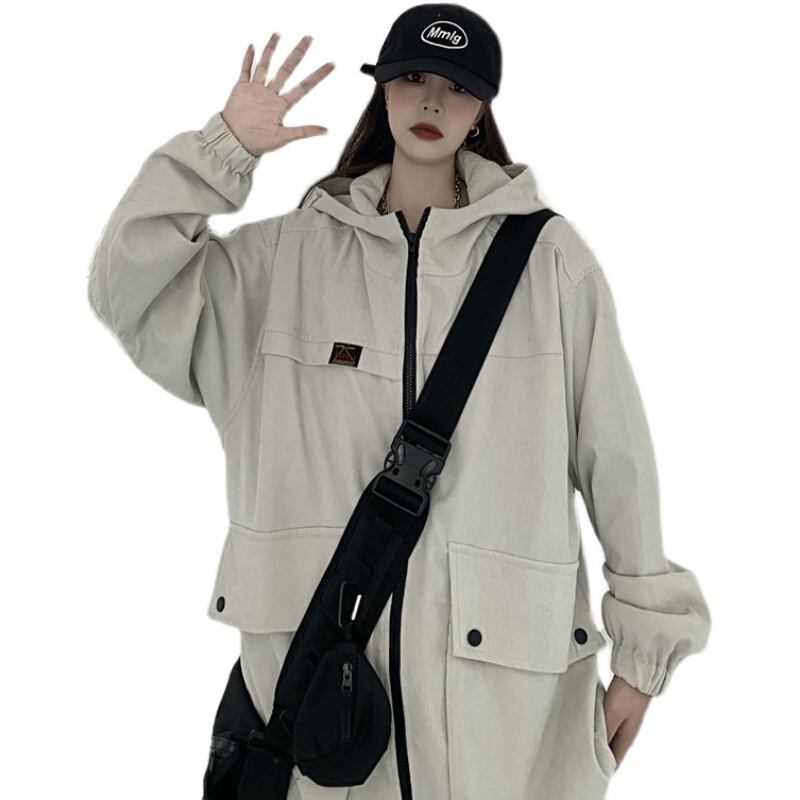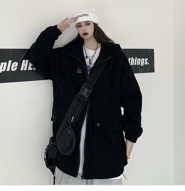 スプリングコーデュロイジャケット コート ルーズフードトップス レディース ストリート 春物 Brother_is_Style39966899223
