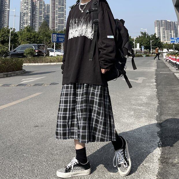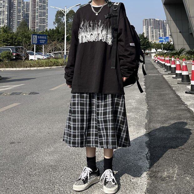 スカート スプリングスタンダード格子柄ハイウェストウェストAライン レトロ 春物 Brother_is_Style1186550518