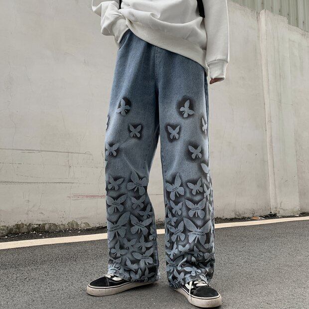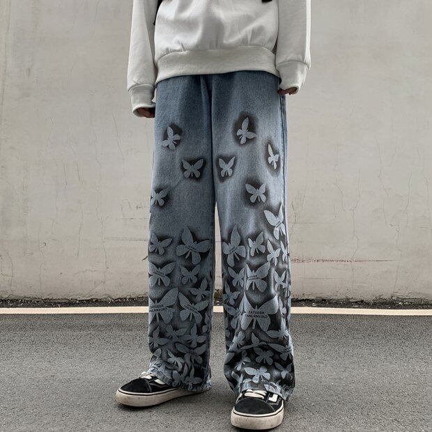ジーンズ スプリングオータムスタンダードButterflyデザイン ルーズ薄手パンツ レトロ 春物 秋物 Brother_is_Style92515230683