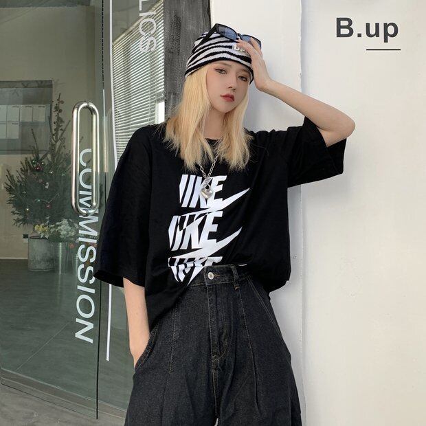 スプリングスタイルブラックTシャツ ルーズラウンドネックトップス かわいい 春物 Oネック Brother_is_Style67087500796