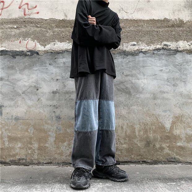 パンツ スプリングオータムスタンダードルーズハイウェストウェストワイドレッグジーンズ レトロ 春物 秋物 ワイドパンツ ステッチ Brother_is_Style63646871302