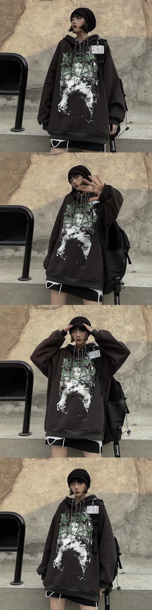 フードセーター レディーススプリングオータムルーズブラックベルベットコート ストリート 春物 秋物 Brother_is_Style17732383101