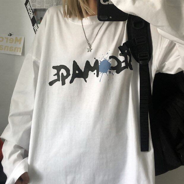 スプリングスタイルシャツ ルーズホワイトTシャツ ロング かわいい 春物 Brother_is_Style48683936001