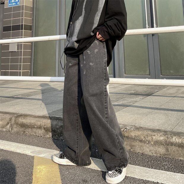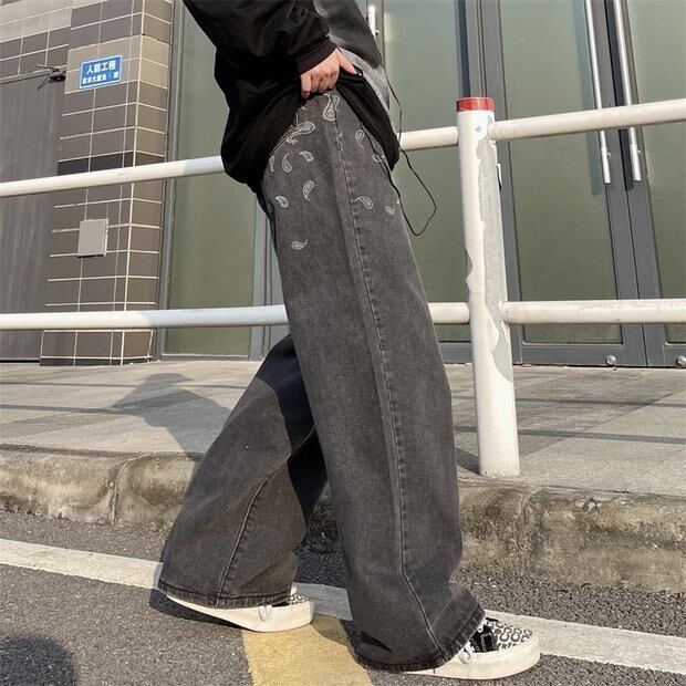 パンツ スタンダードFlowerデザイン ワイドレッグルーズハイウェストウェストブラックジーンズ レトロ ワイドパンツ フラワーデザイン Brother_is_Style33891514063