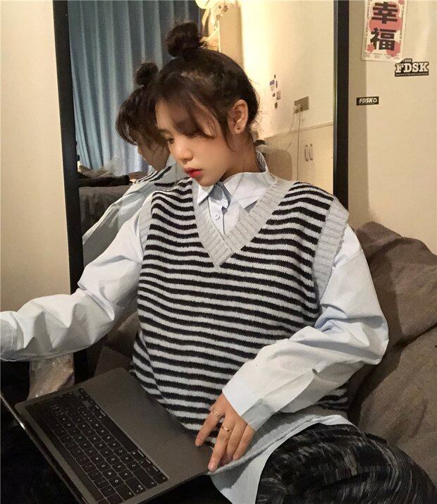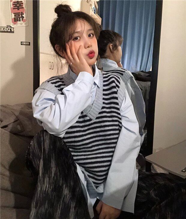 スプリングストライプニットルーズシャツ ロング 春物 Brother_is_Style54582365423