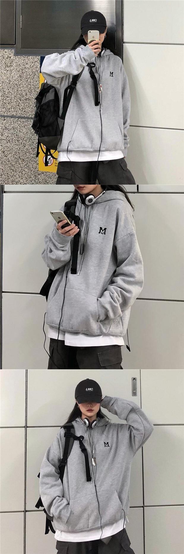グレーフードセーター レディースオータムウィンタースタンダードルーズベルベットコート レトロ 秋物 冬物 Brother_is_Style88189488660