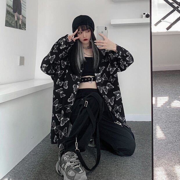 シャツ スプリングスタンダードスタイルButterflyデザイン ルーズジャケット ロング レトロ 春物 Brother_is_Style34733091150