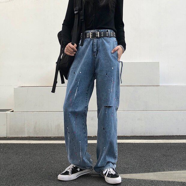 パンツ スプリングスタイルハイウェストウェストジーンズ ルーズワイドレッグ かわいい 春物 ワイドパンツ Brother_is_Style27980691746