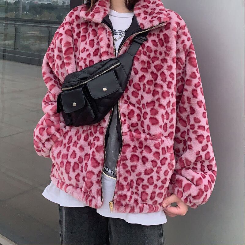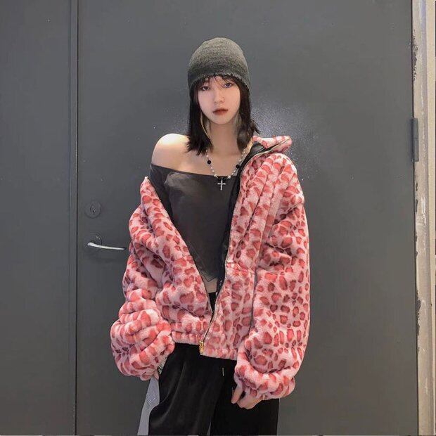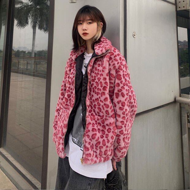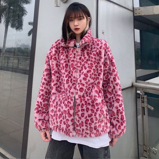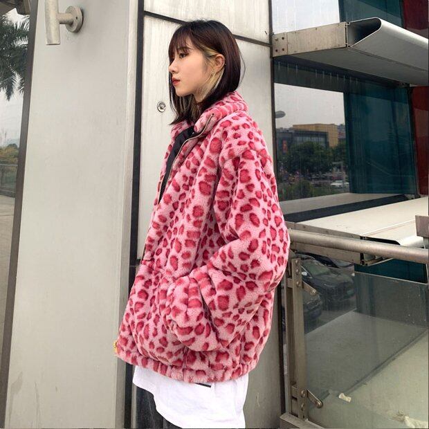 ジャケット レディースウィンタースタンダードレオパードプリント柄ルーズ ピンク コットン レトロ 冬物 Brother_is_Style32523359044