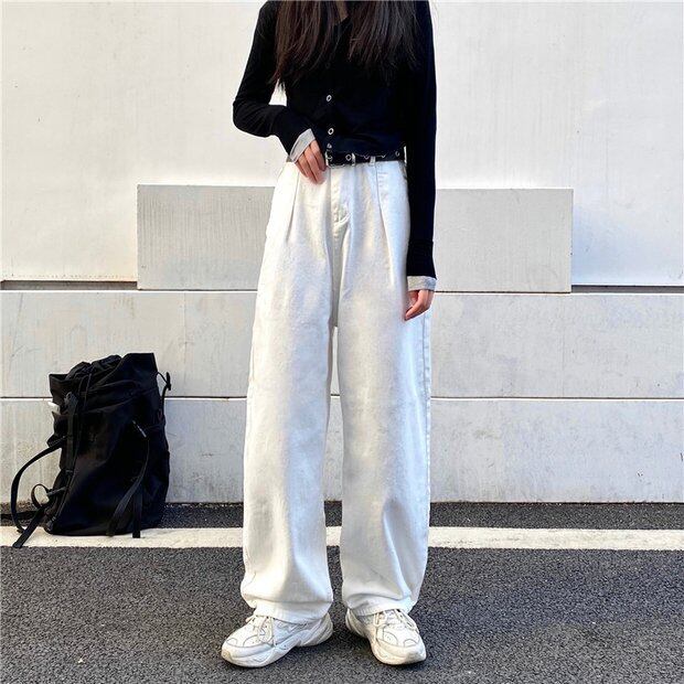 パンツ スプリングスタイルホワイトワイドレッグルーズハイウェストウェストジーンズ かわいい 春物 ワイドパンツ Brother_is_Style8825136838