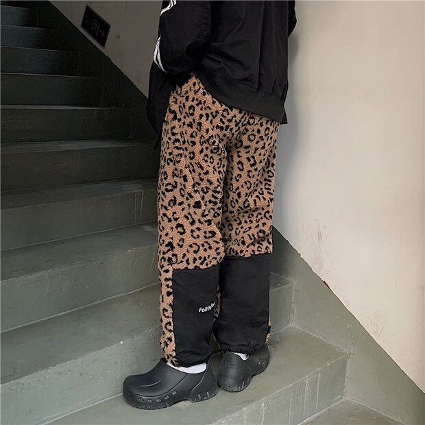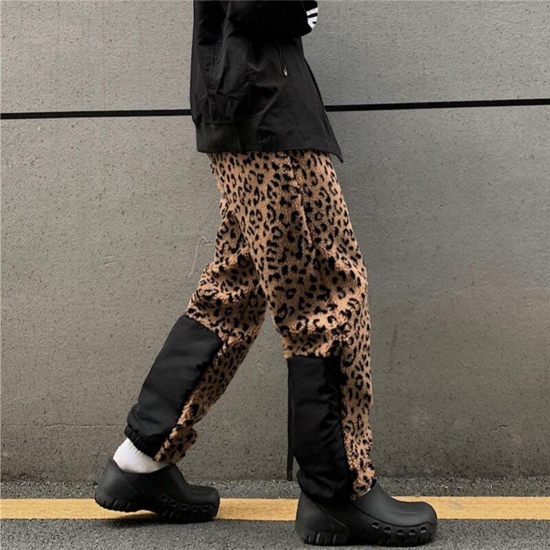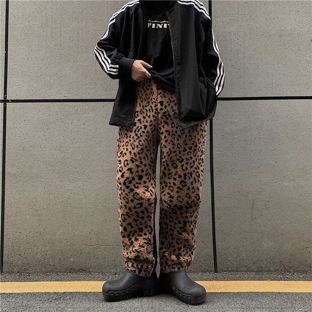 パンツ オータムウィンターベルベットレオパードプリント柄カジュアルルーズハイウェストウェスト コルセット 秋物 冬物 ステッチ Brother_is_Style58438769235