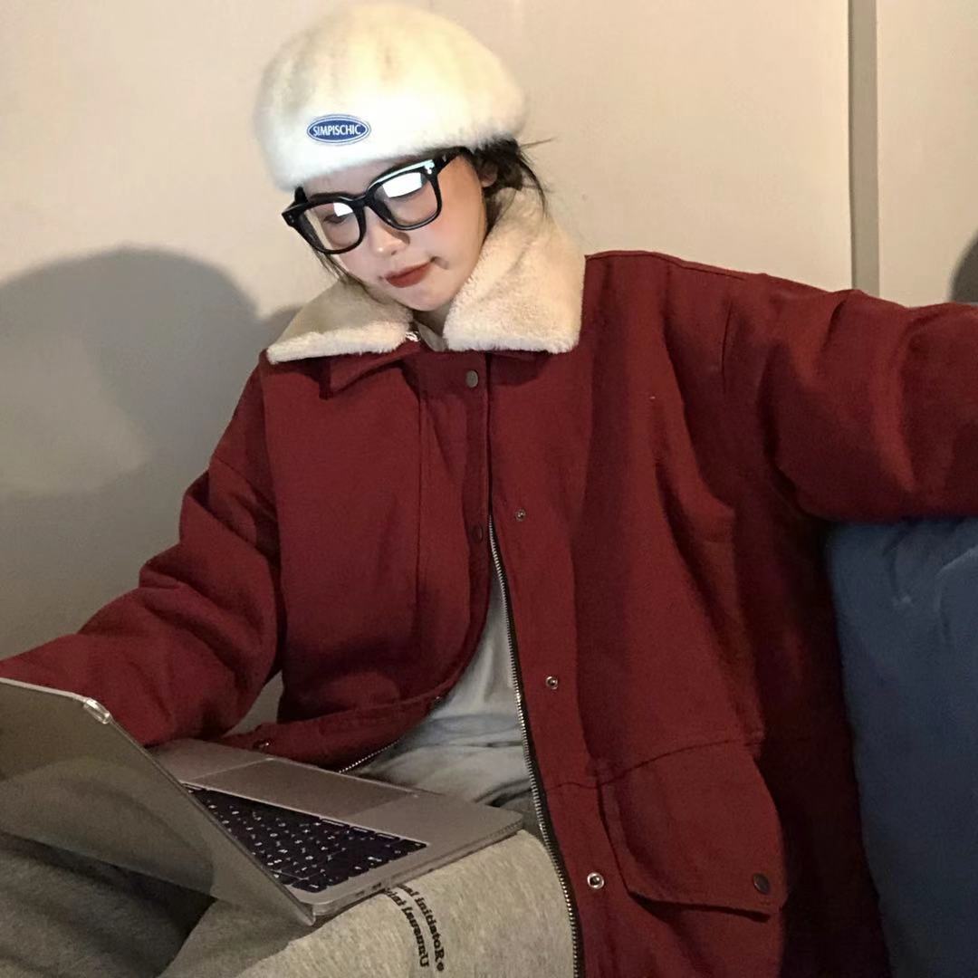 ジャケット レディースウィンタースタイルルーズレッドファーカラー コットン 冬物 Brother_is_Style87842937375