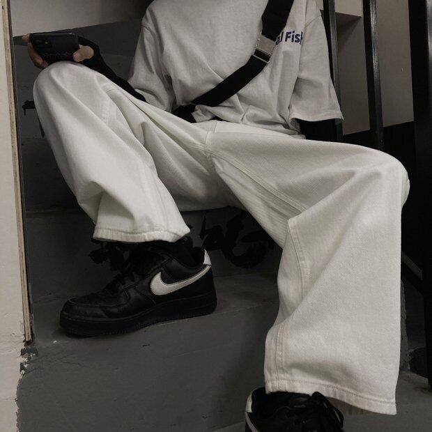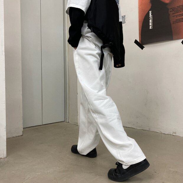パンツ スプリングスタンダードホワイトルーズ薄手ハイウェストジーンズ レトロ 春物 Brother_is_Style61118499453