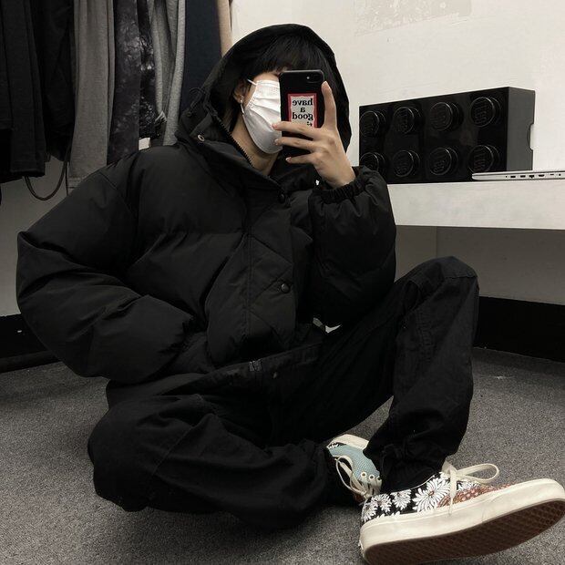 ジャケット ウィンタースタイルルーズブラックフードレディース コットン 冬物 Brother_is_Style89293241680