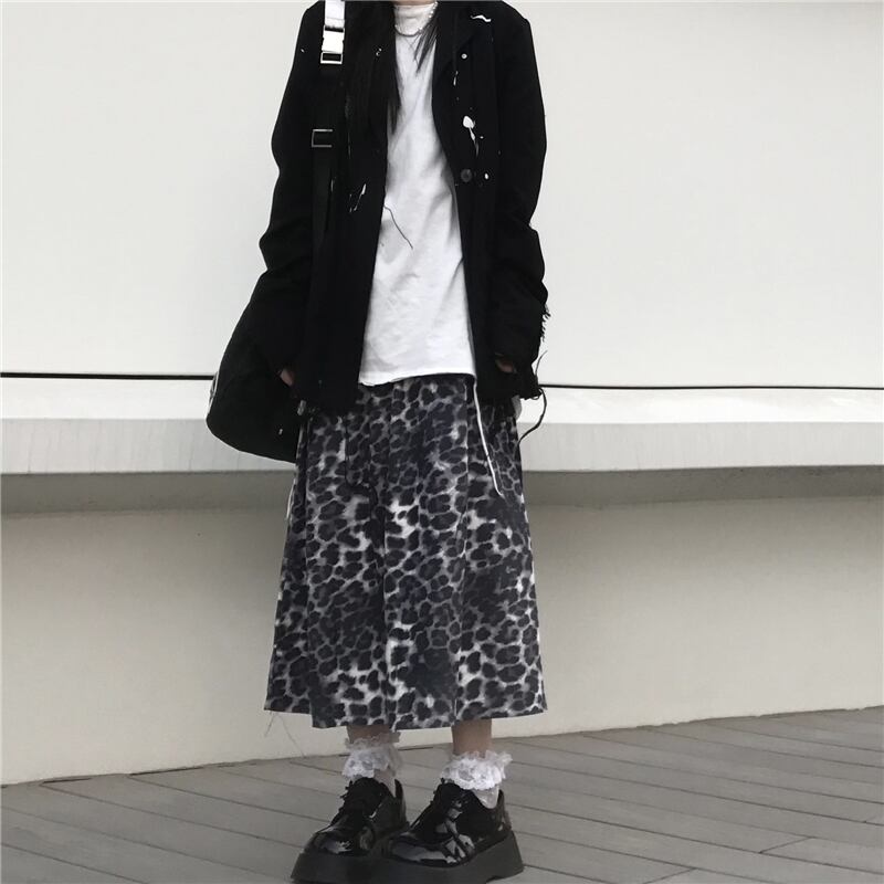 スカート ハイウェストウェストレオパードプリント柄Aライン薄手アーム Brother_is_Style85441122202