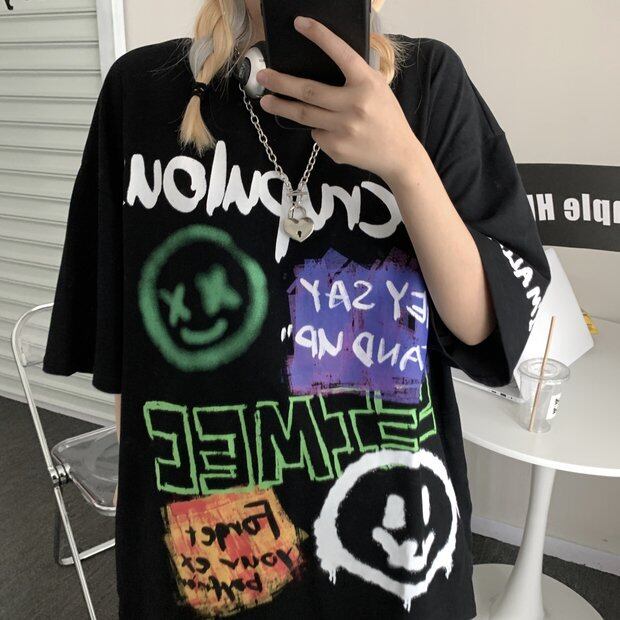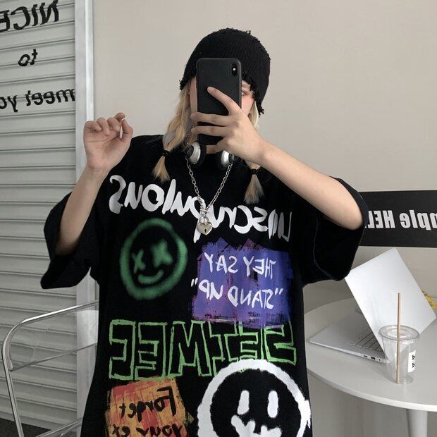 スプリングスタイルトップス ルーズブラックTシャツ かわいい 春物 Brother_is_Style79842908954