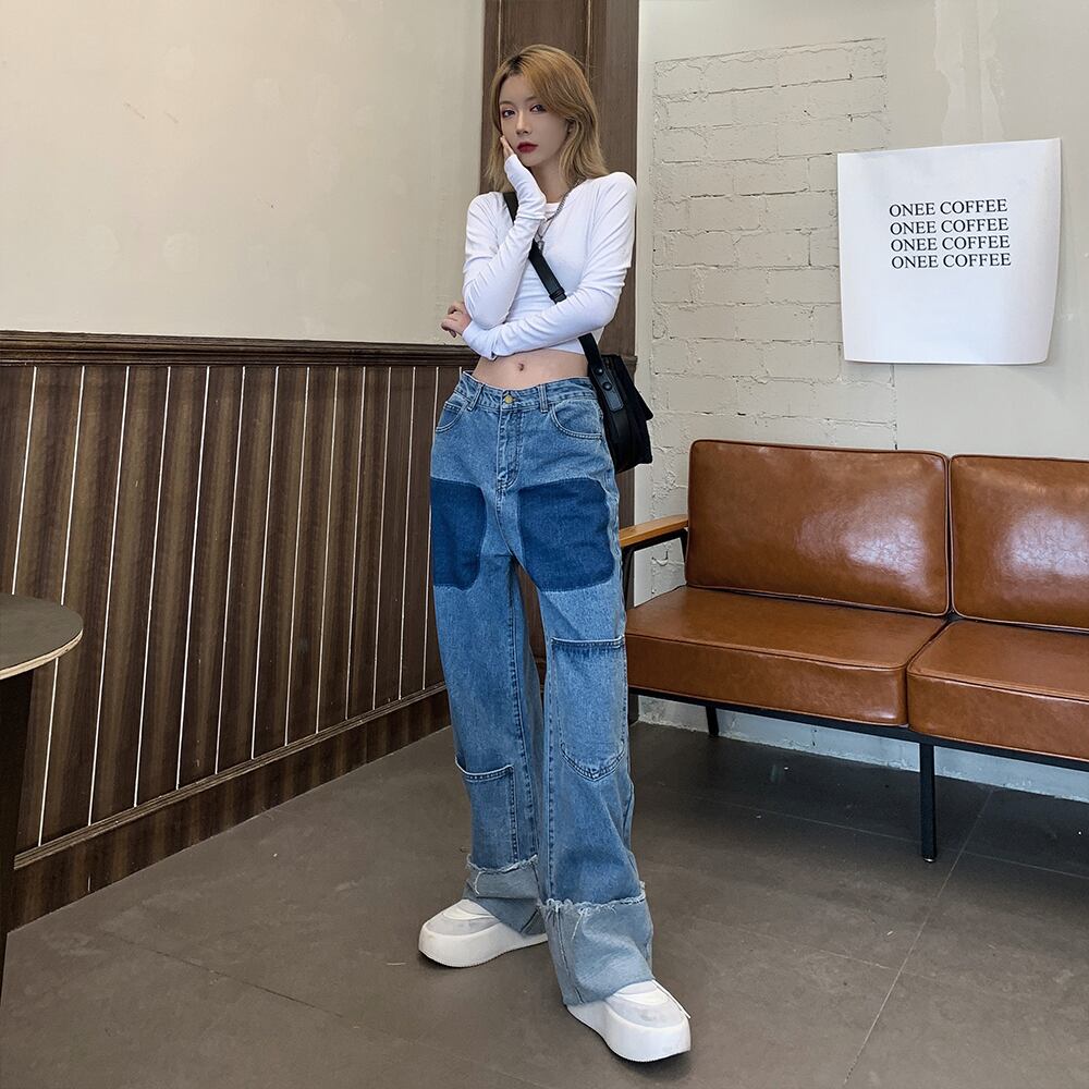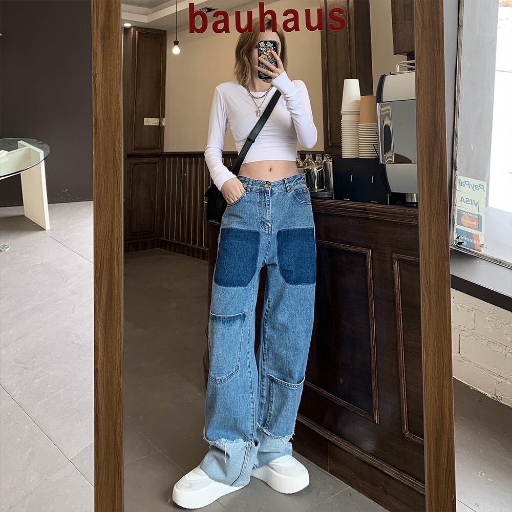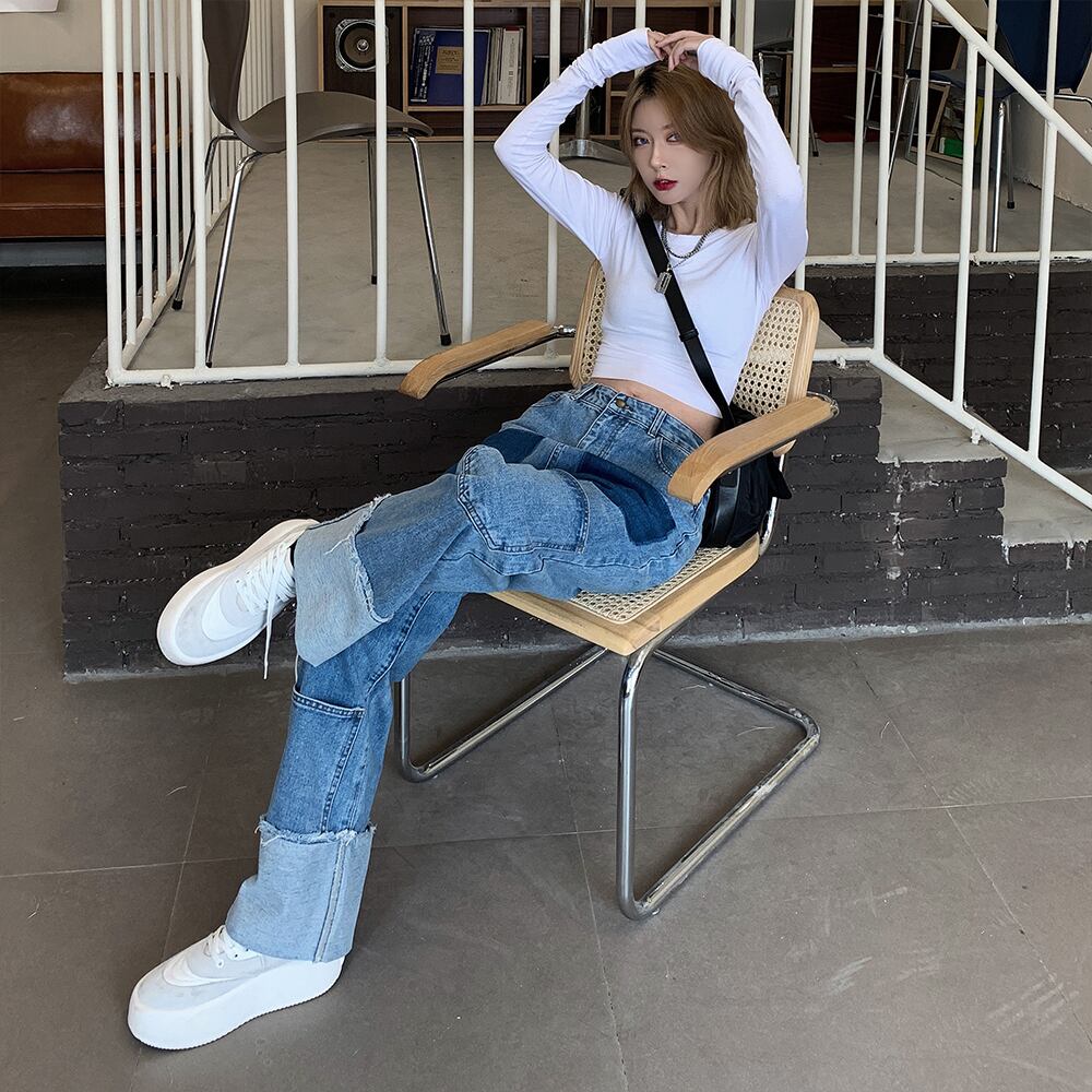 ブルーパンツ スプリングオータムスタイルハイウェストウェストルーズ薄手ジーンズ かわいい 春物 秋物 Brother_is_Style28728372881