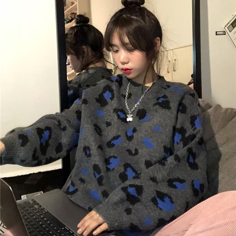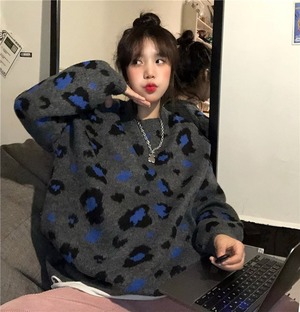 オータムウィンタースタイルレオパードプリント柄セーター コート ルーズレディース 秋物 冬物 Brother_is_Style74779197934