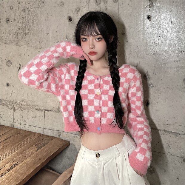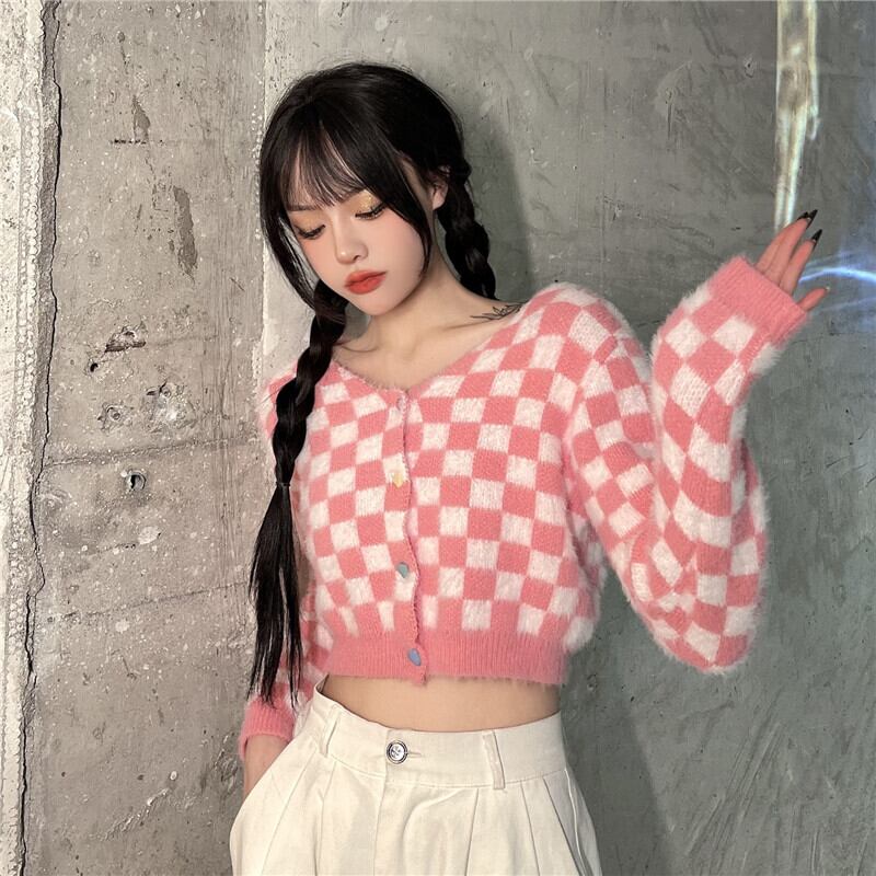 オータムウィンターニットセーター トップス ルーズカーディガンショートジャケット ピンク 秋物 冬物 Brother_is_Style4703881528