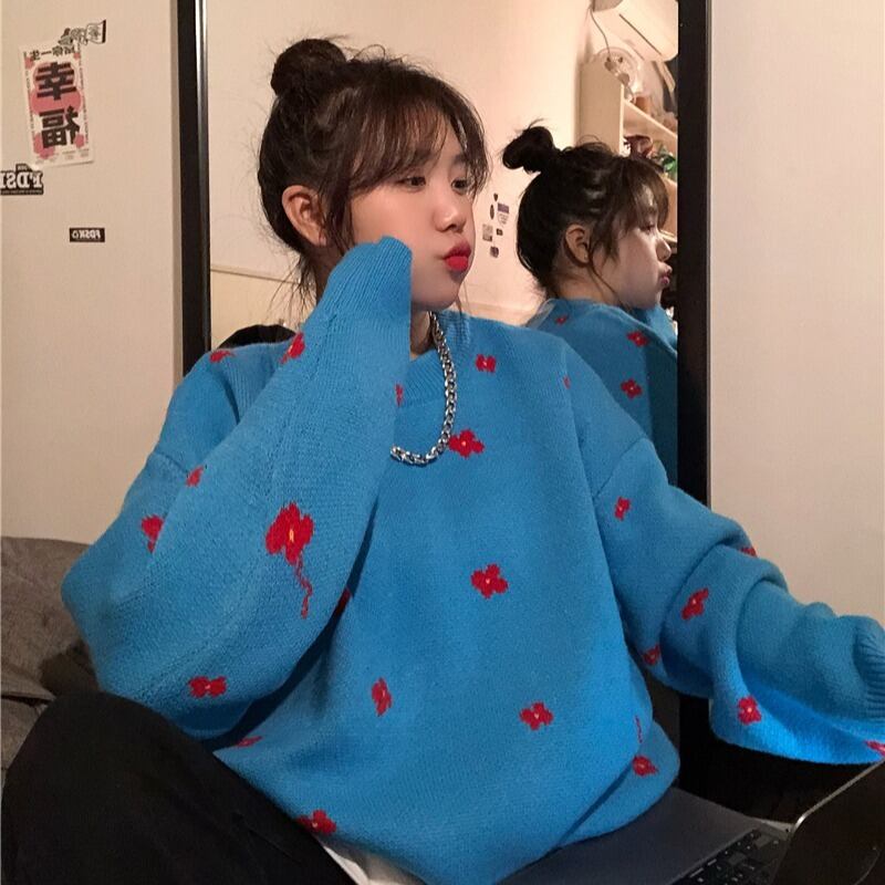 スプリングオータムラウンドネックニットセーター コート ルーズプルオーバー レディース 春物 秋物 Oネック Brother_is_Style55385160294