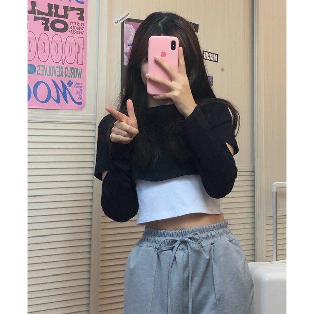 スプリングクロップドショートTシャツ ハイウェストウェストカジュアルパンツ 春物 Brother_is_Style42414591958