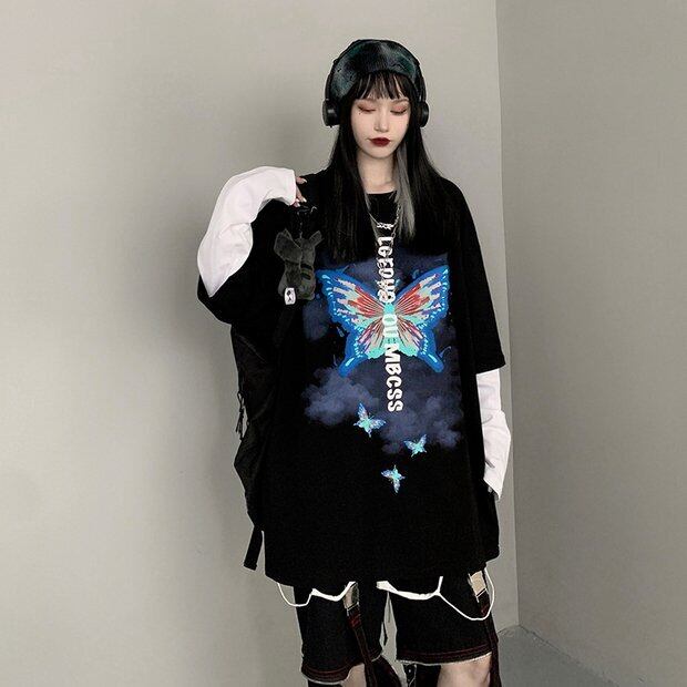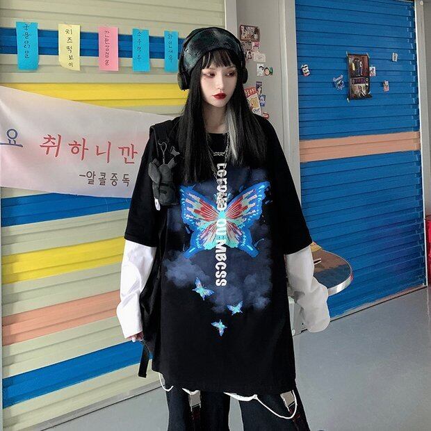 Tシャツ スプリングルーズブラックトップス ロング かわいい 春物 Brother_is_Style77591174922