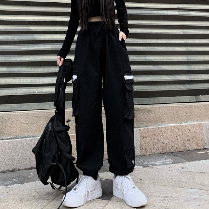 ブラックパンツ オータムウィンター薄手オーバーオール ルーズハイウェストウェストカジュアル コルセット ストリート 秋物 冬物 Brother_is_Style27605361422