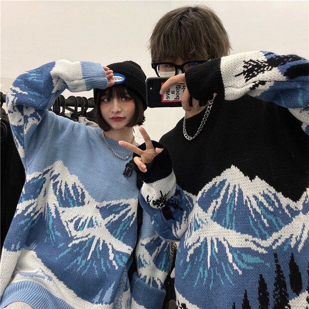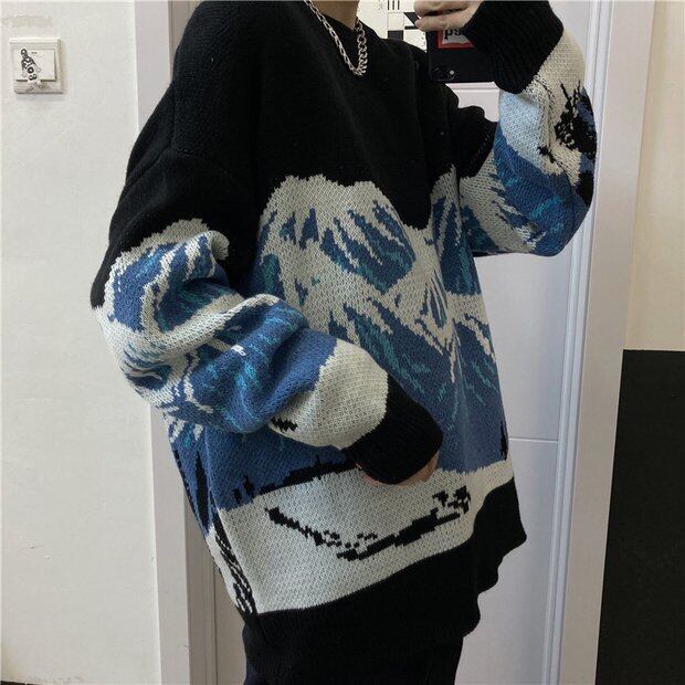 スプリングオータムスタイルニットセーター コート ルーズブループルオーバー 春物 秋物 Brother_is_Style18956272354