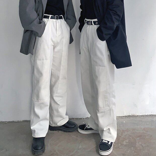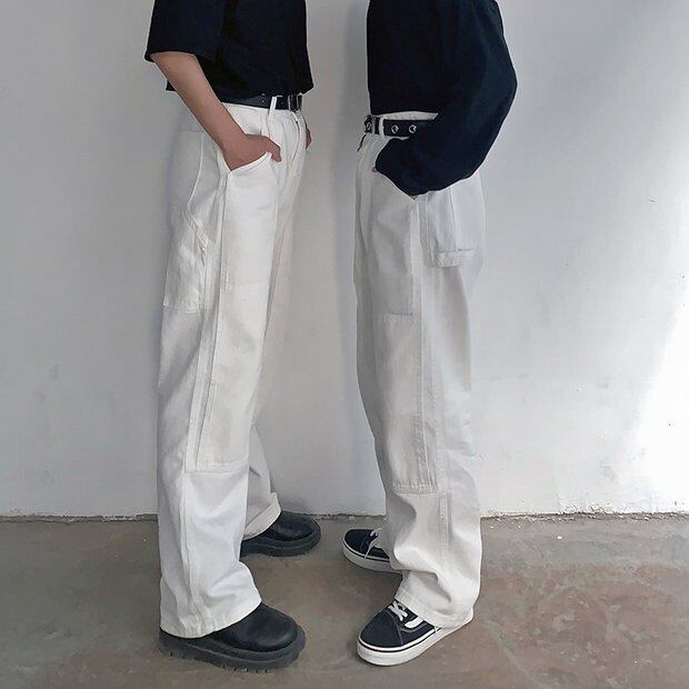 パンツ スプリングオータムスタイルルーズハイウェストウェストホワイトジーンズ 春物 秋物 Brother_is_Style58436973454