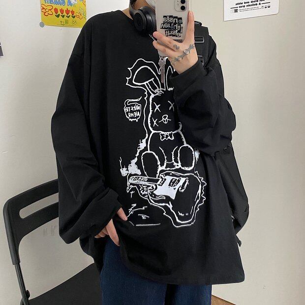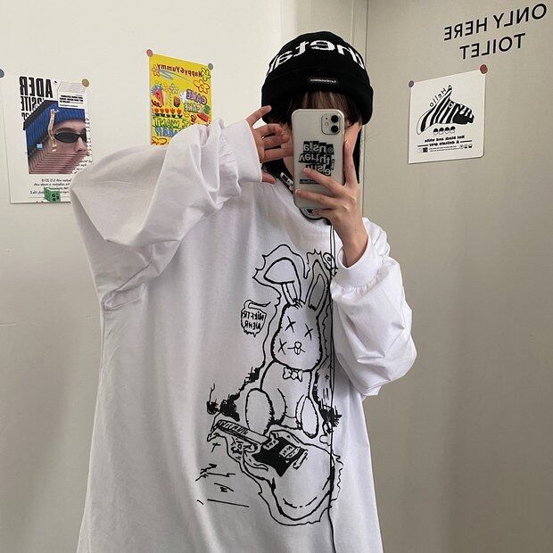 スプリングスタンダードTシャツ シャツ ルーズラウンドネックトップス ロング レトロ 春物 Oネック Brother_is_Style66857380183