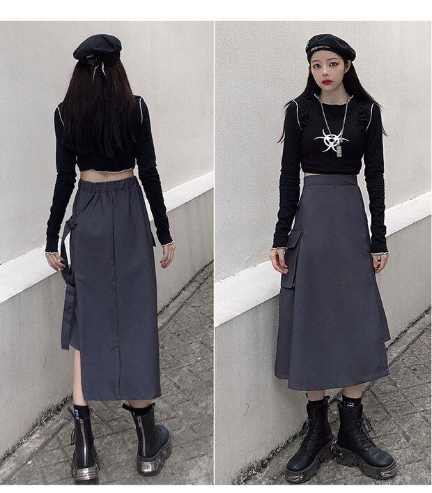 スカート スプリングオータムハイウェストウェストプリーツAラインロング 春物 秋物 Brother_is_Style56595101932