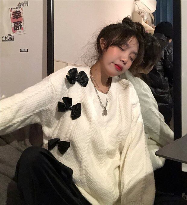 スプリングオータムレッドニットセーター コート ルーズラウンドネックプルオーバー レディース 春物 秋物 Oネック Brother_is_Style6847974990
