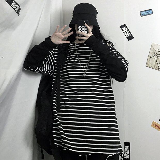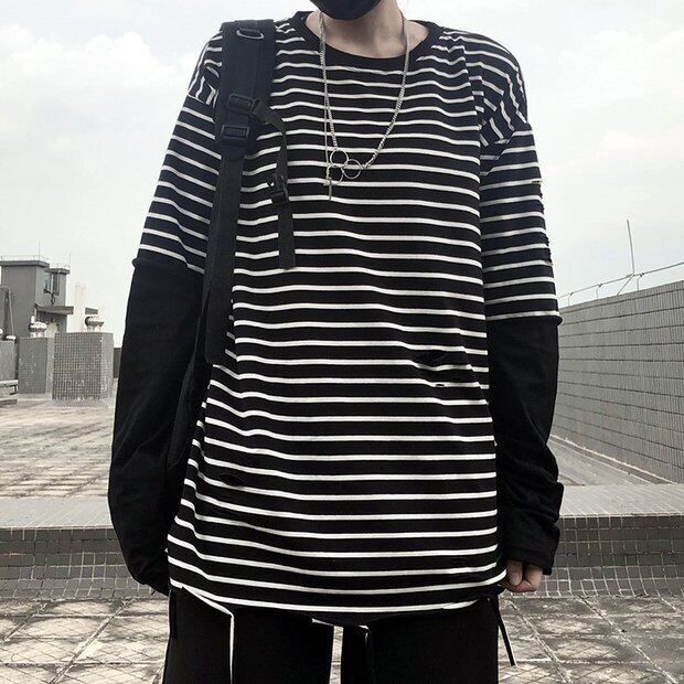 スプリングスタイルストライプTシャツ ルーズトップス ロング かわいい 春物 Brother_is_Style63384381269