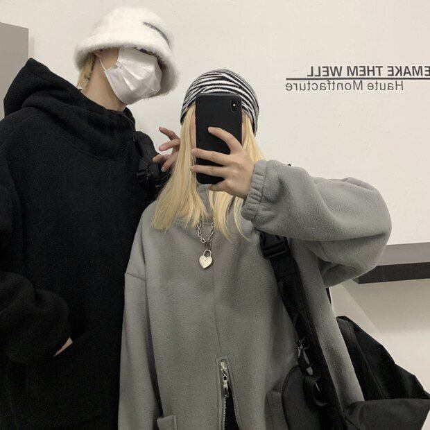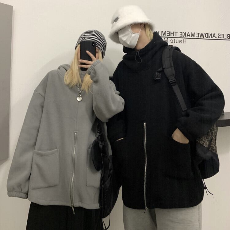 セーター スプリングオータムスタイルルーズベルベットフードジャケット ストリート 春物 秋物 Brother_is_Style14317090097