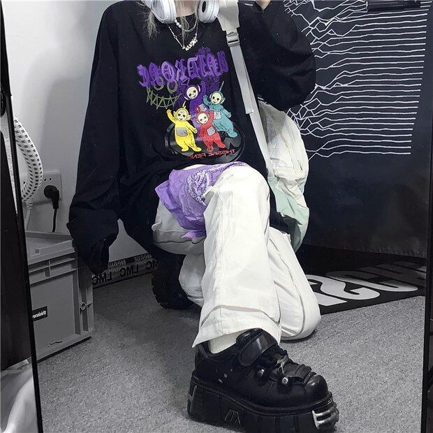 スプリングスタイルラウンドネックトップス ルーズブラックTシャツ ロング かわいい 春物 Oネック Brother_is_Style4342842589