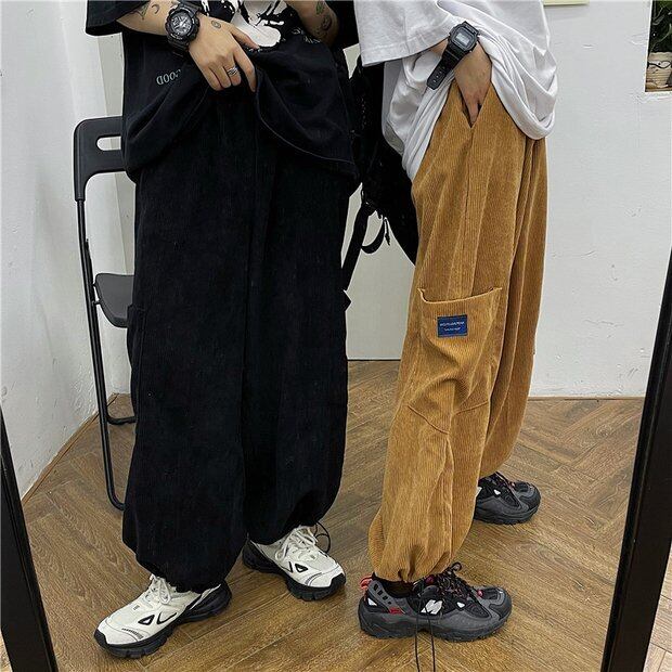 パンツ スプリングオータムスタンダードコーデュロイルーズブラックカジュアル レトロ 春物 秋物 Brother_is_Style55659316829